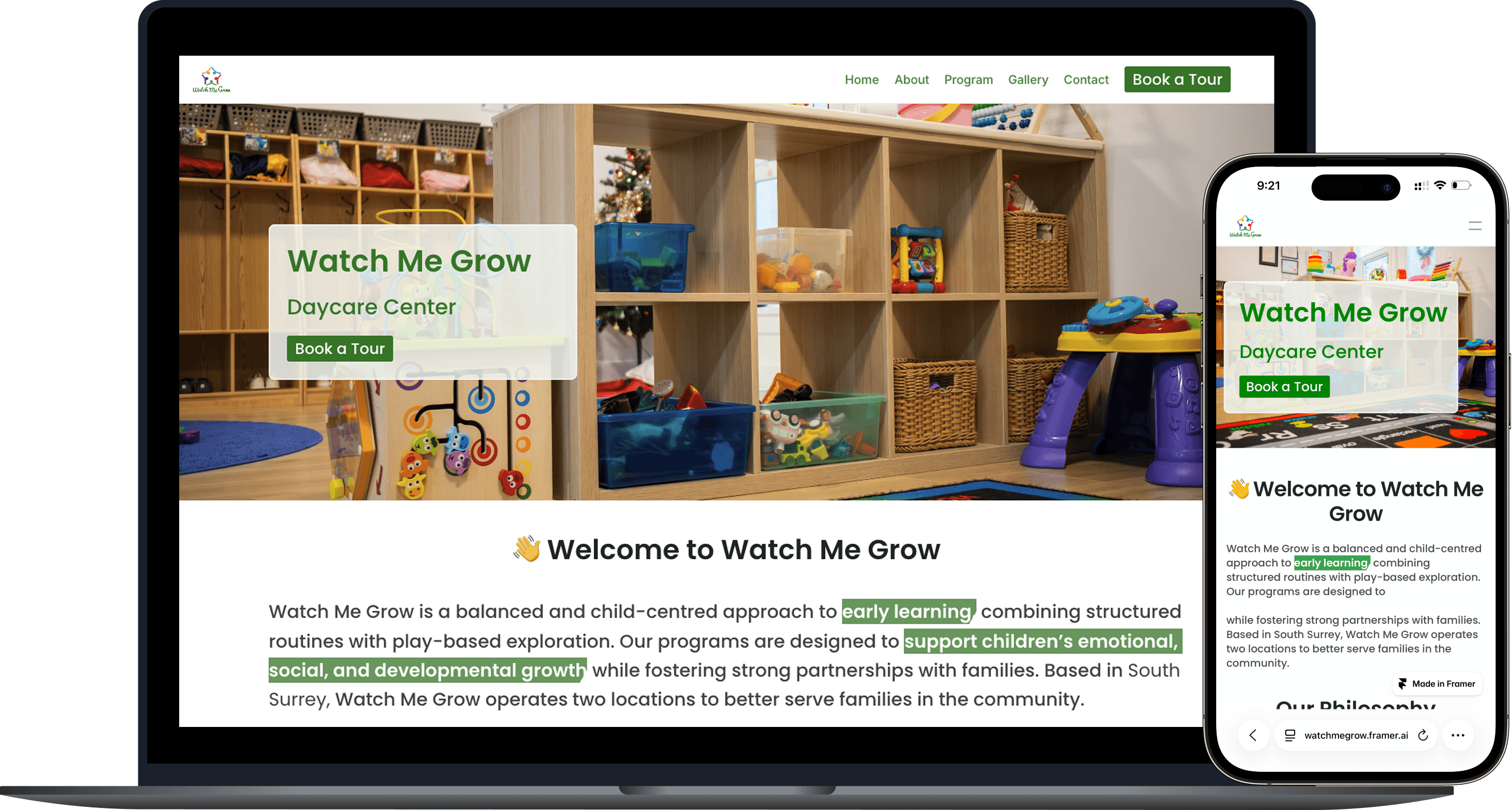 When Watch Me Grow expanded to a second location, enrollment relied heavily on informal referrals with no structured digital presence. I approached the project as a UX challenge: designing a clear and trustworthy enrollment pathway for parents evaluating childcare options.