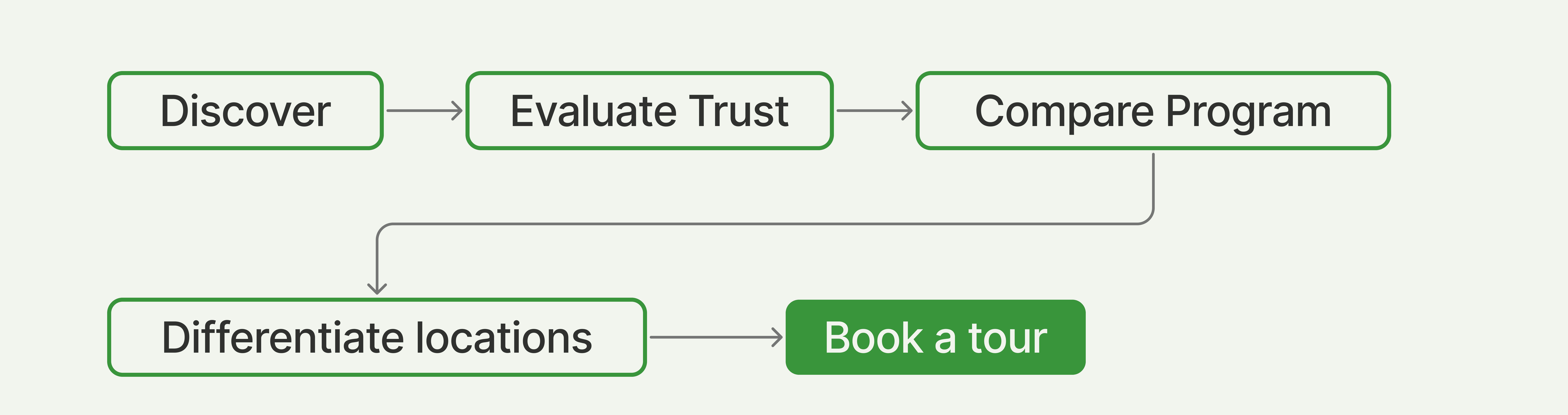 To support enrollment growth, I mapped a simplified parent decision sequence.
