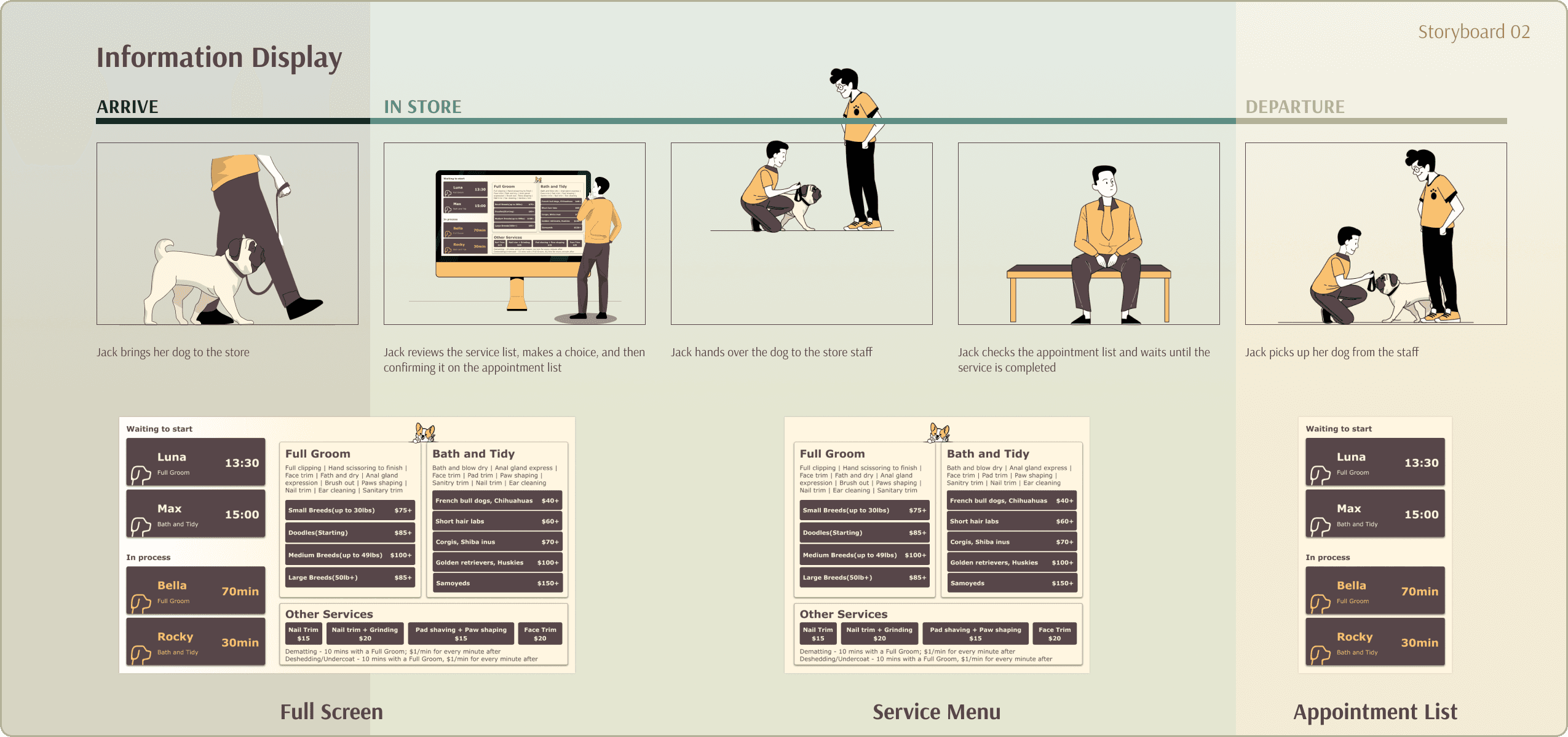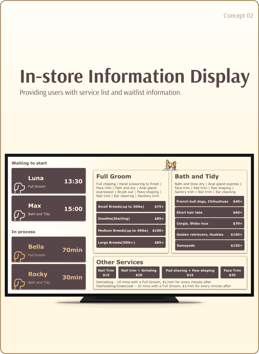 Visualizing the pet grooming process information to replace the current oral-based store-customer communication model. We aims to establish a standardized and efficient information display method, offering customers a more intuitive pet grooming experience.
