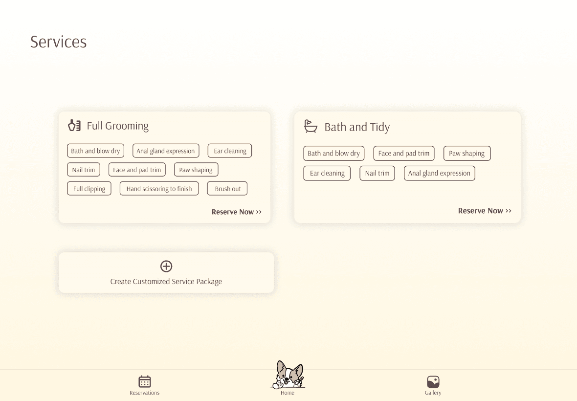 Concentrate on enhancing customer understanding of grooming service contents and setting expectations by redesigning the visualization of the service list.