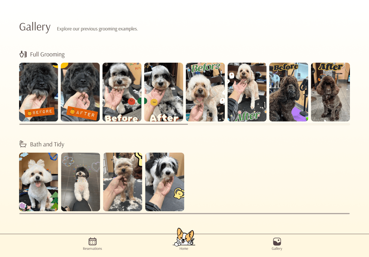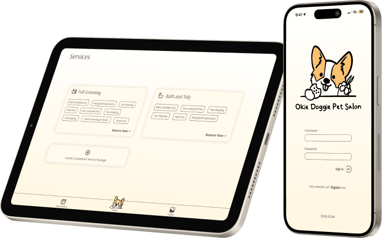 In our visual design phase, we ensured all design elements aligned with the client's brand identity. This involved using the colours from the Okie Doggie Pet Salon logo as the primary palette for our design work. By maintaining a consistent colour scheme, we reinforced brand recognition and created a cohesive visual experience across all touchpoints.