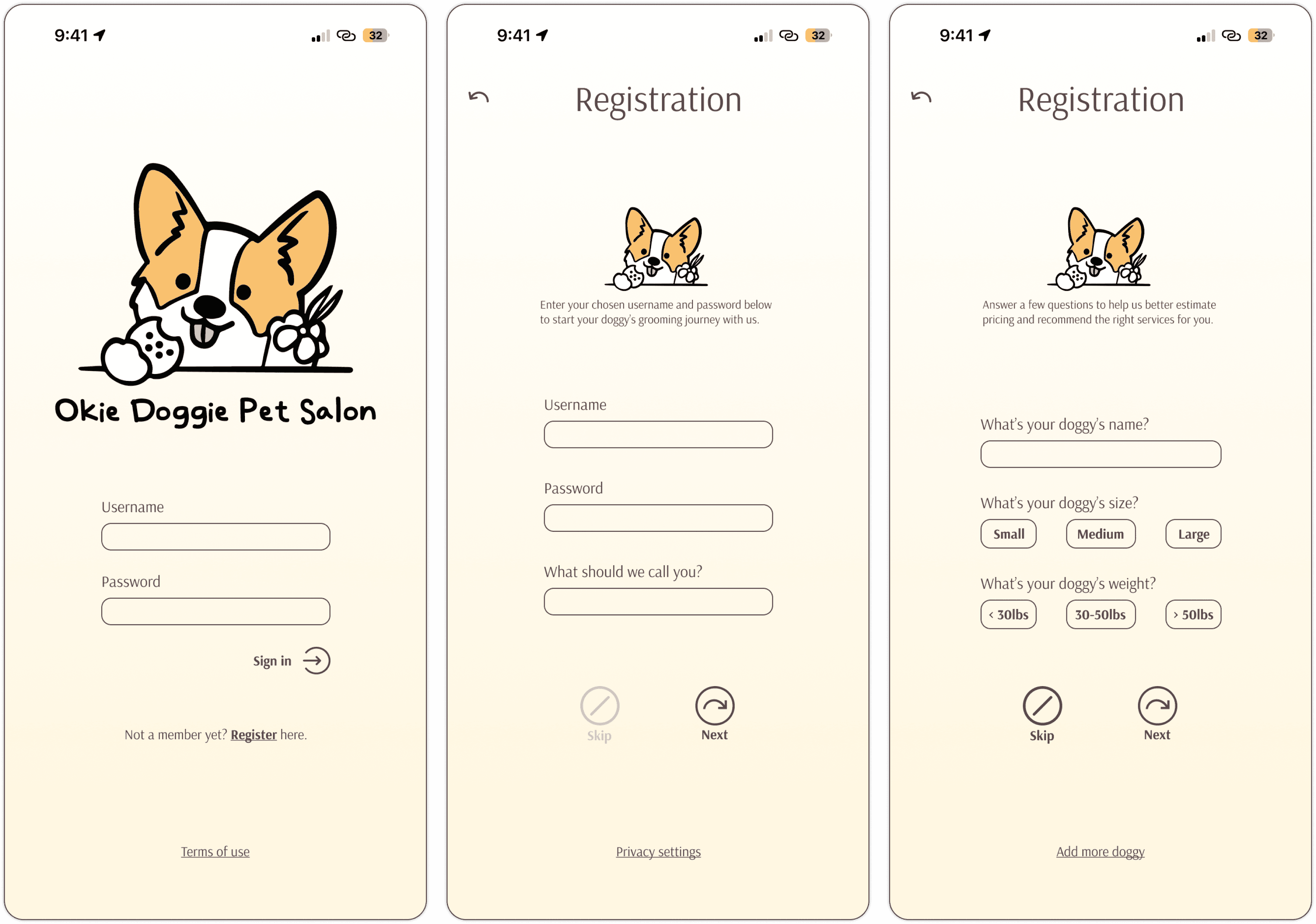 Here are the final screens for Okie Doggie Solutions